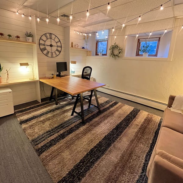 Your own private office with cozy lighting & couch! Includes Monitor, Couch, High-Speed WiFi, Windows.